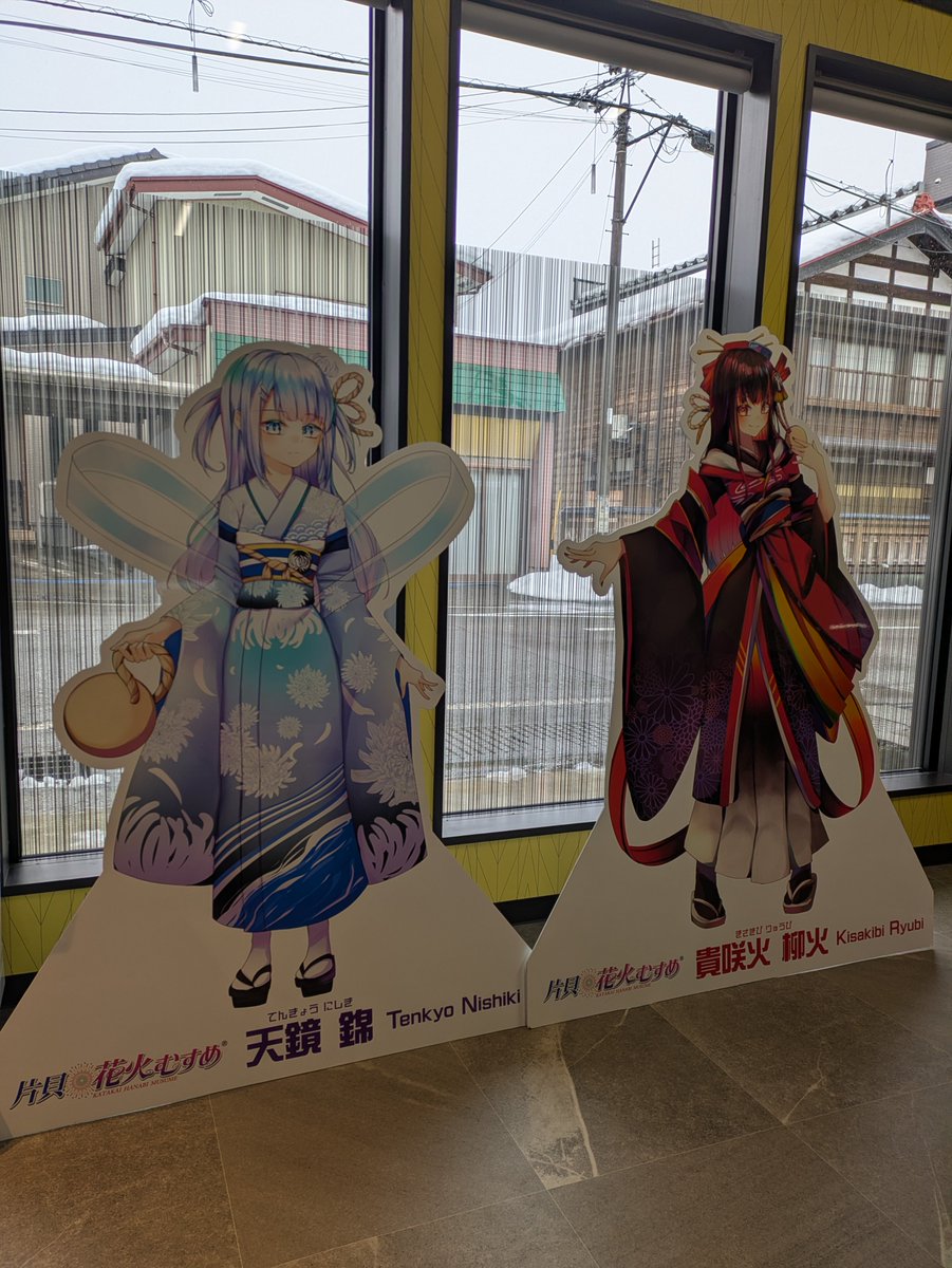 【公式】片貝花火むすめ @hanamusu0909 2026/01/09 11:27 おはようございます🎆 本日も除雪からスタートしました😓 まだまだ降雪は続きます!通勤・通学はもちろん 除雪中の『事故』にも十分お気を付けくださいませ🙏 さて、雪をかまうのも飽きてきましたので片貝館店内の「花むすパネル」を輝宵と夏陽に交代いたしました✨ ぜひ遊びに来てくださいね~😍 https://t.co/0HyFUMvZGU Xを見る